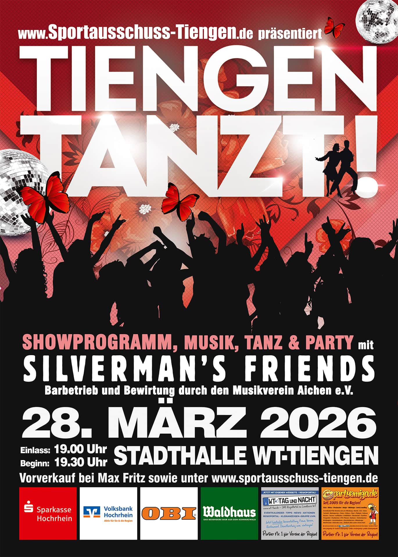 Am 28. März 2026 darf wieder das Tanzbein geschwungen werden, den der Sportausschuss läd erneut zu Tiengen tanzt in die Stadthalle Tiengen ein.
